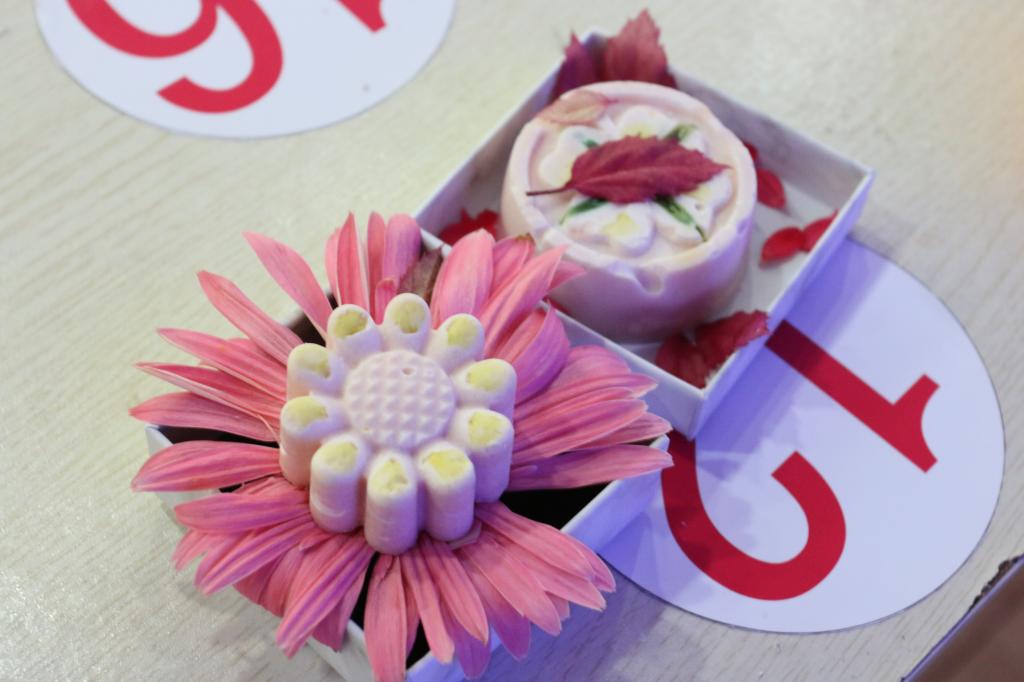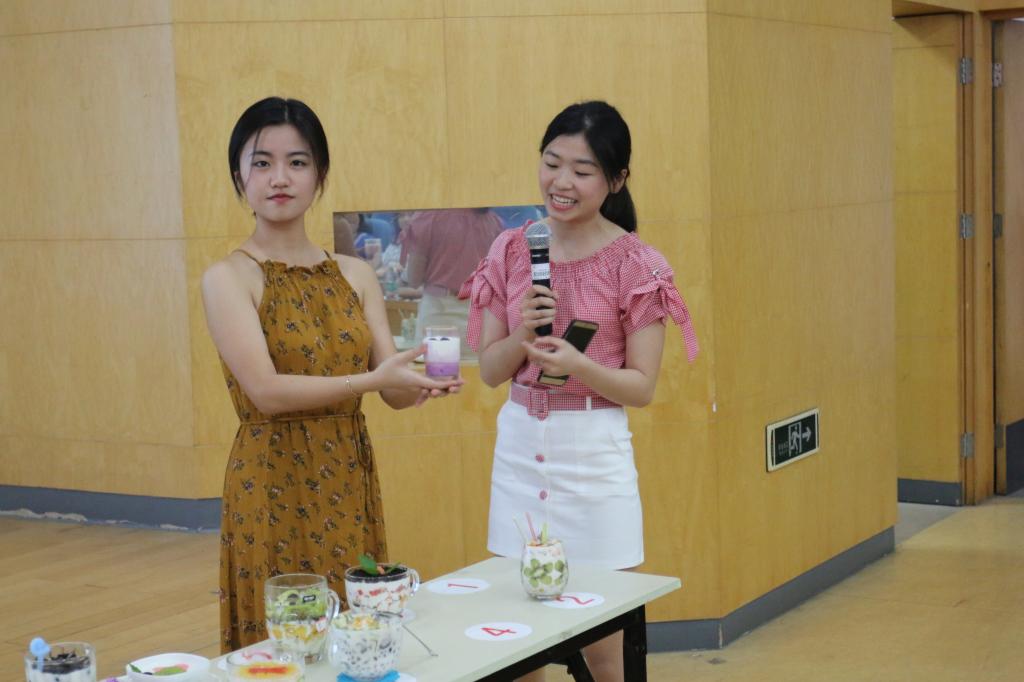 本次“创皂”手工皂和“醇臻”酸奶作品展评会中,各队伍将手工皂与花瓣、绿植、灯光相结合,装饰出精美的手工皂作品;将蛋糕、饼干、水果与酸奶搭配,制作出营养健康的食品。随后,各团队上台就作品的用料、创意及寓意作简要介绍。