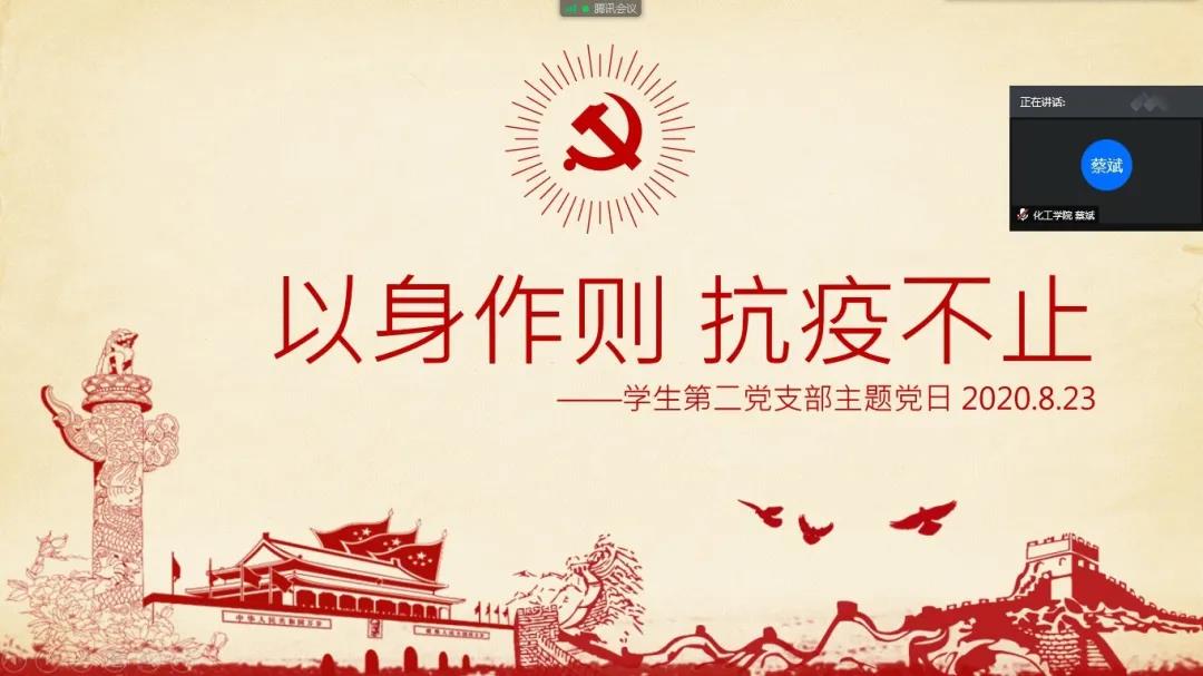 学生第二党支部通过腾讯会议平台,线上召开“以身作则,抗疫不止”主题党日。全体党员参加了此次活动,活动由支部书记蔡斌主持。
